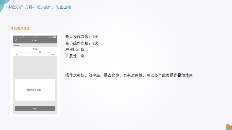 对此分析作出优化后,采用拖动圆点方式,相比原方案来说操作次数平均降低3~6倍,且无需用户输入提前防止用户输错。